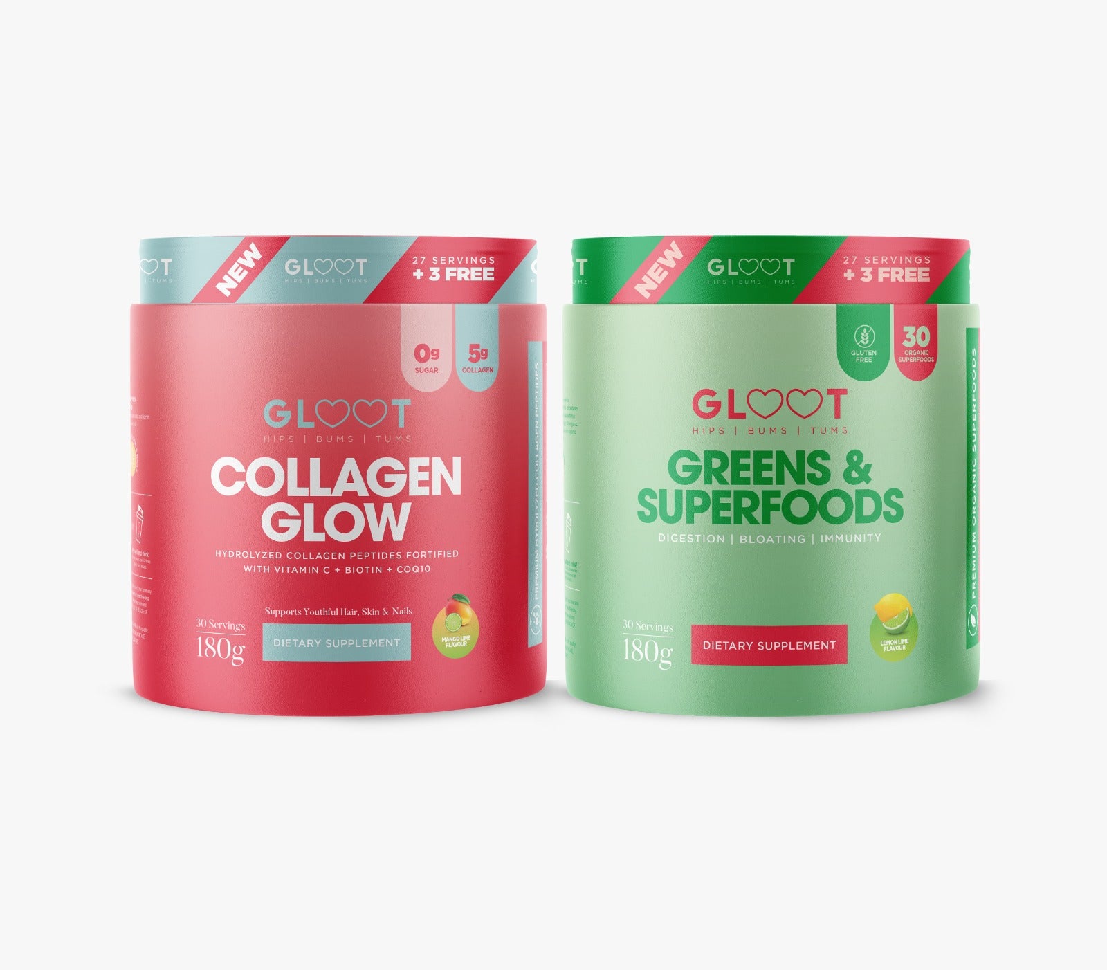 Our Greens & Superfoods are formulated to combat bloating, boost immunity, and support digestion. When these beauty boosters are used together, they create a dynamic duo, working harmoniously to enhance your radiance and health from within.